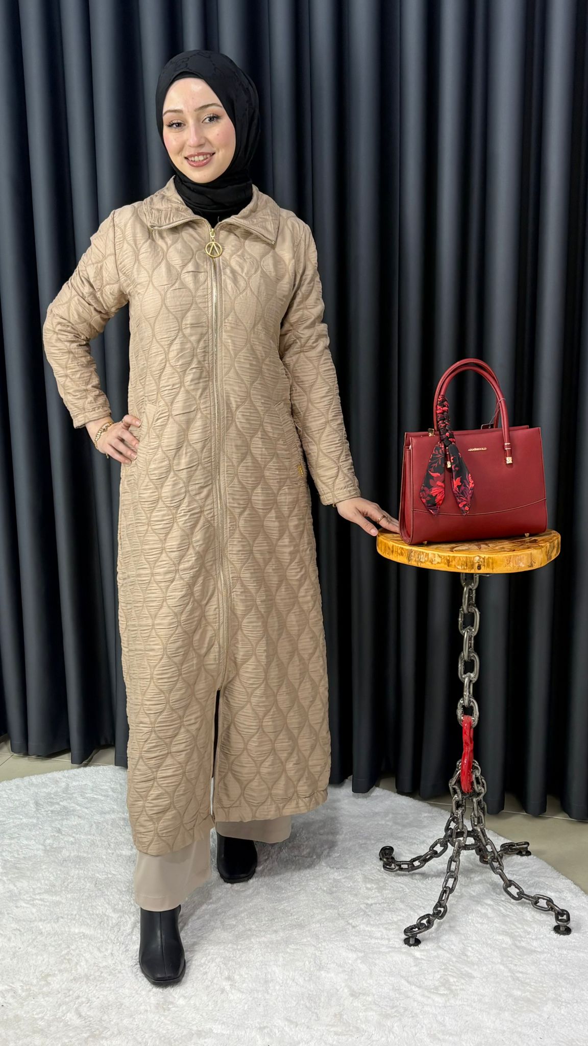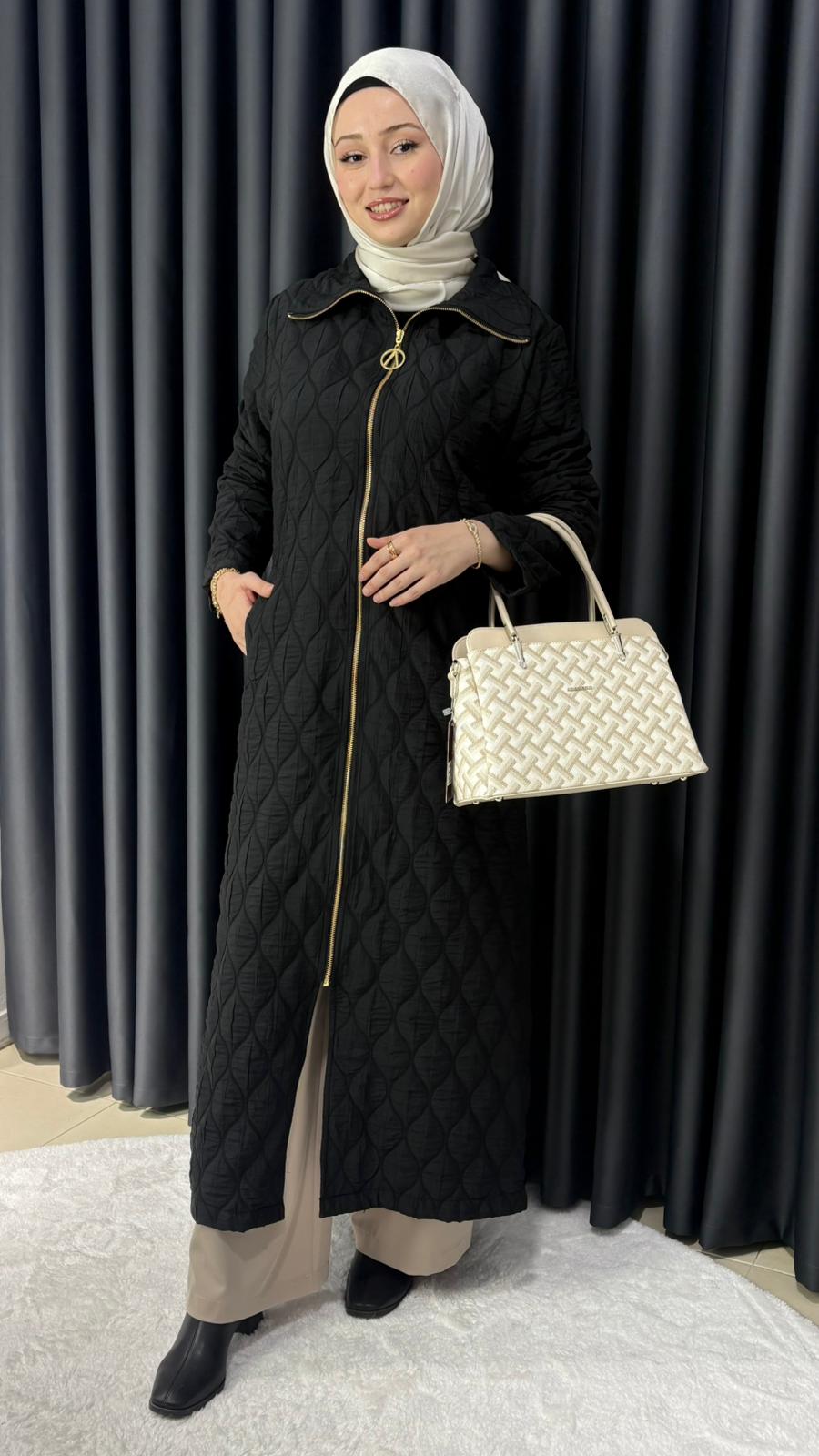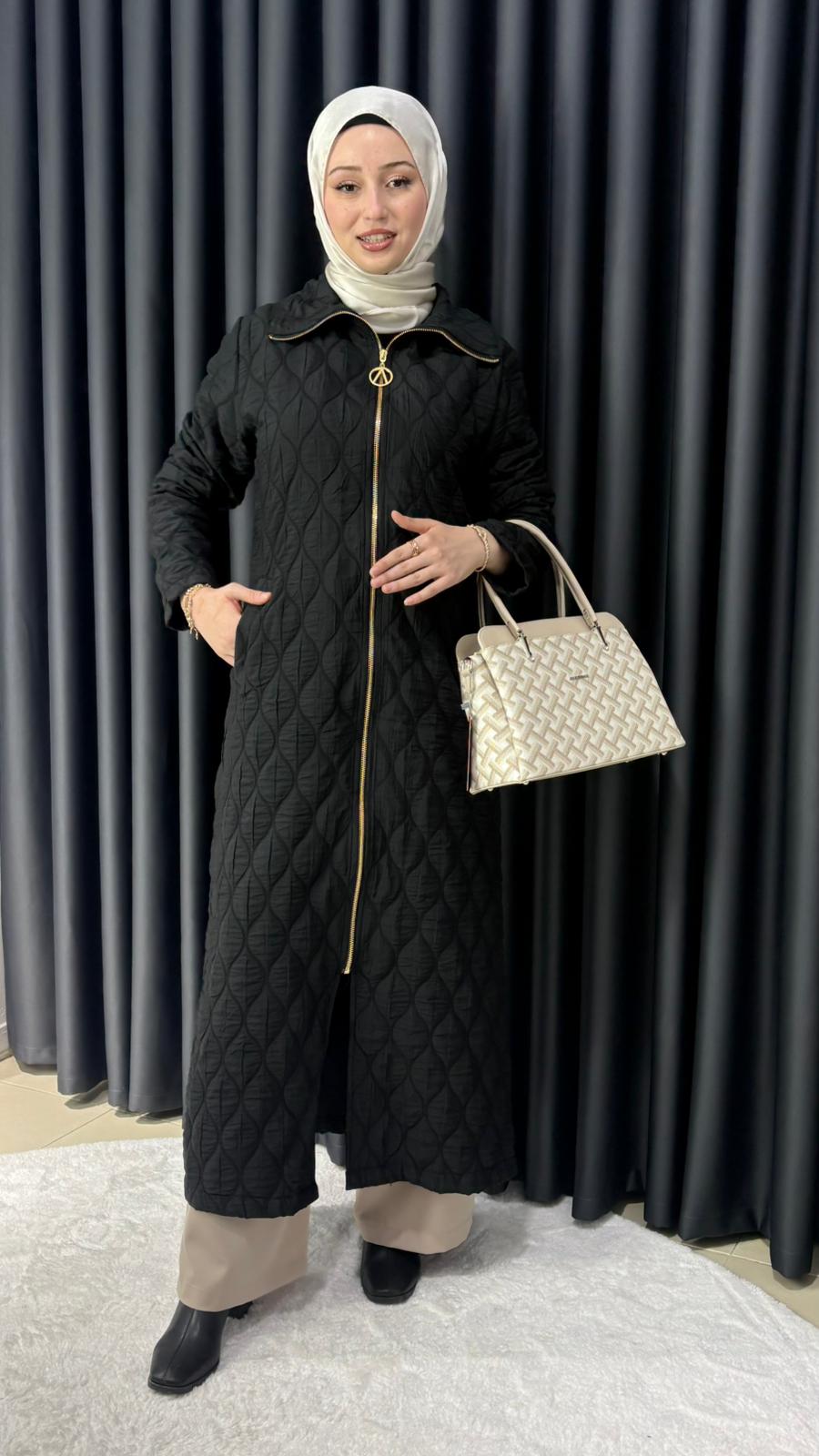 Uzun Fermuarlı Kapitone Kap