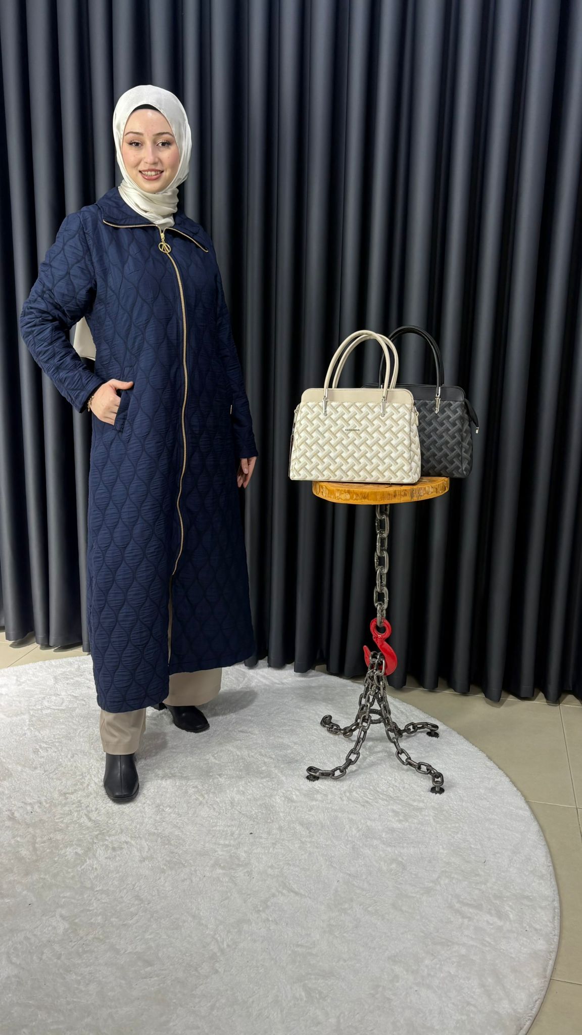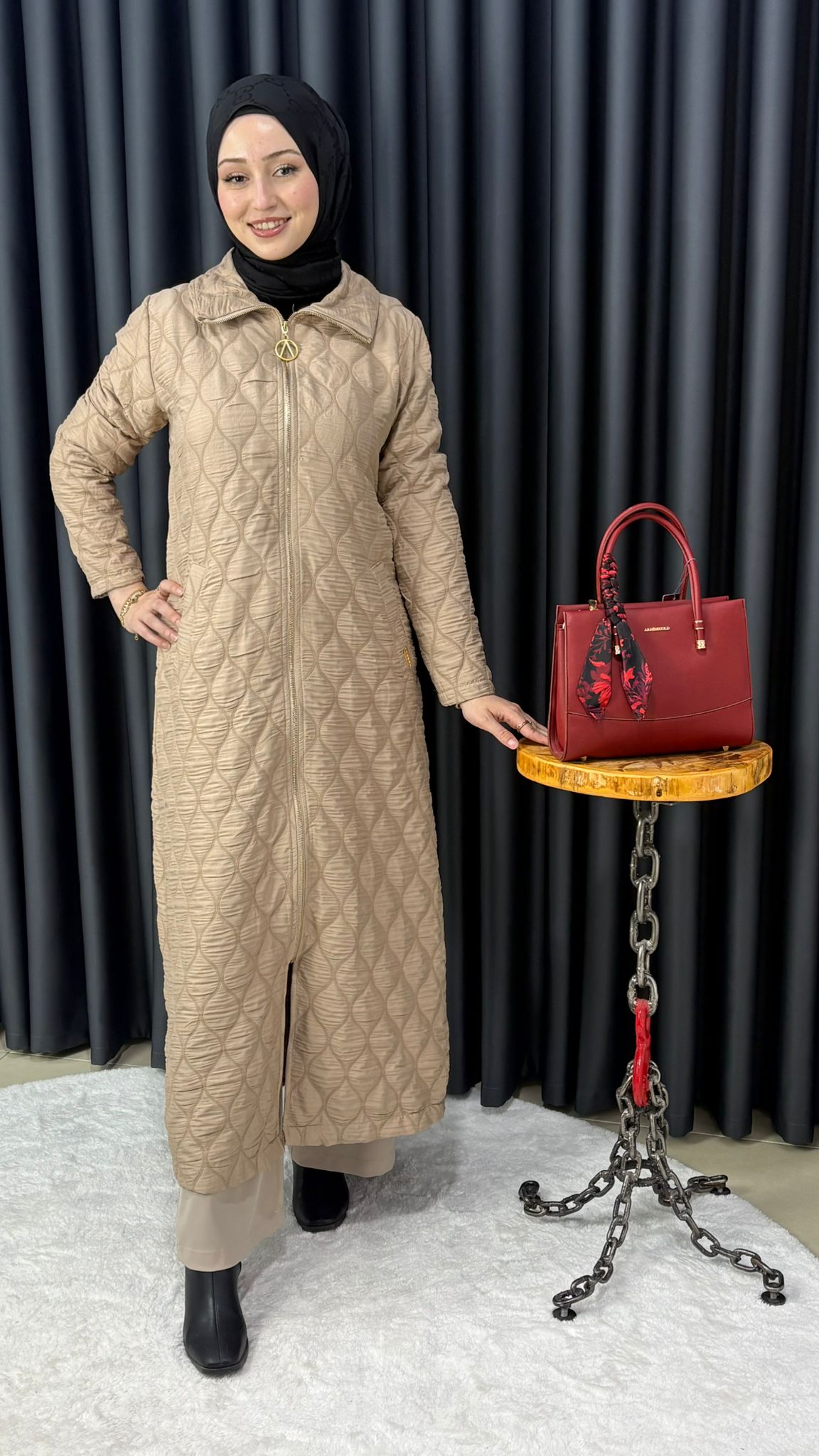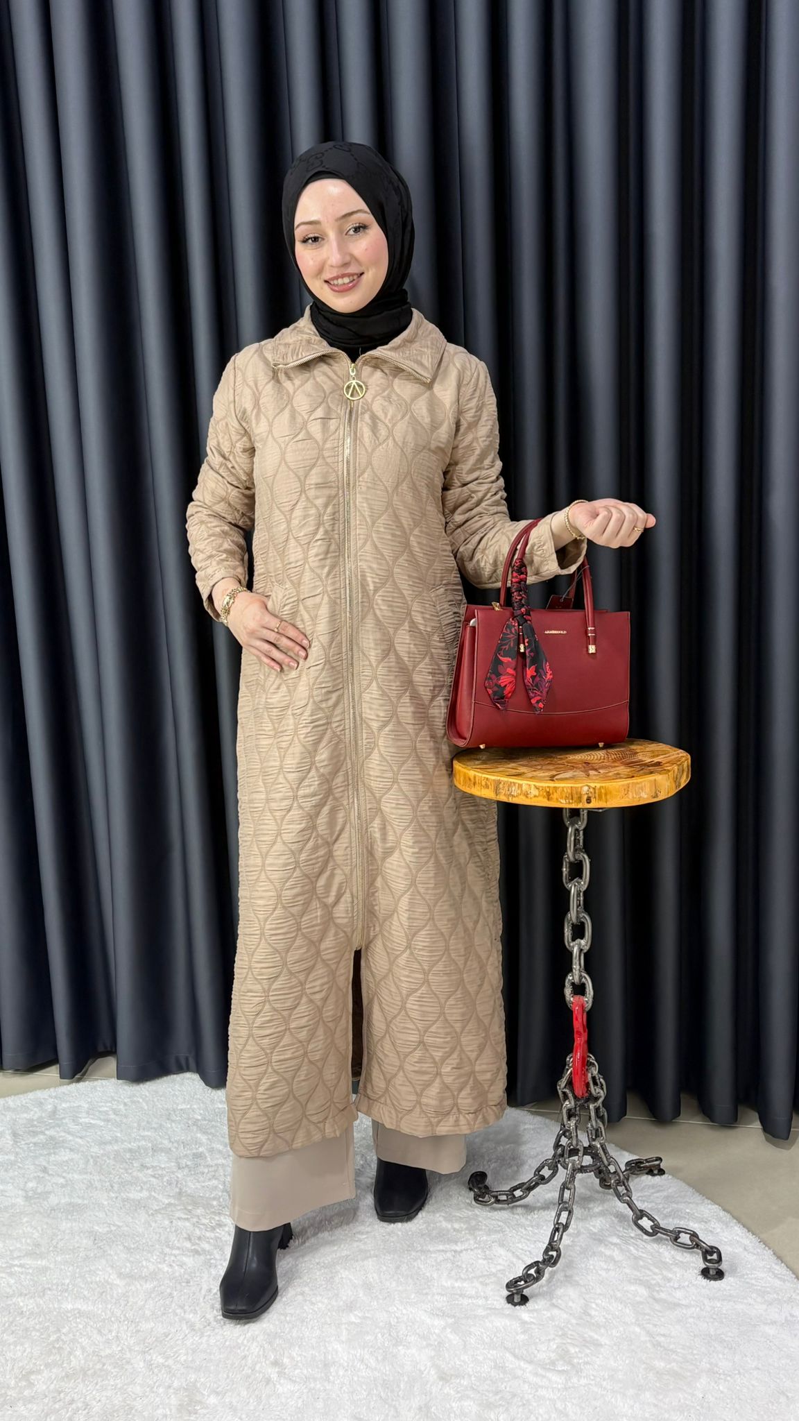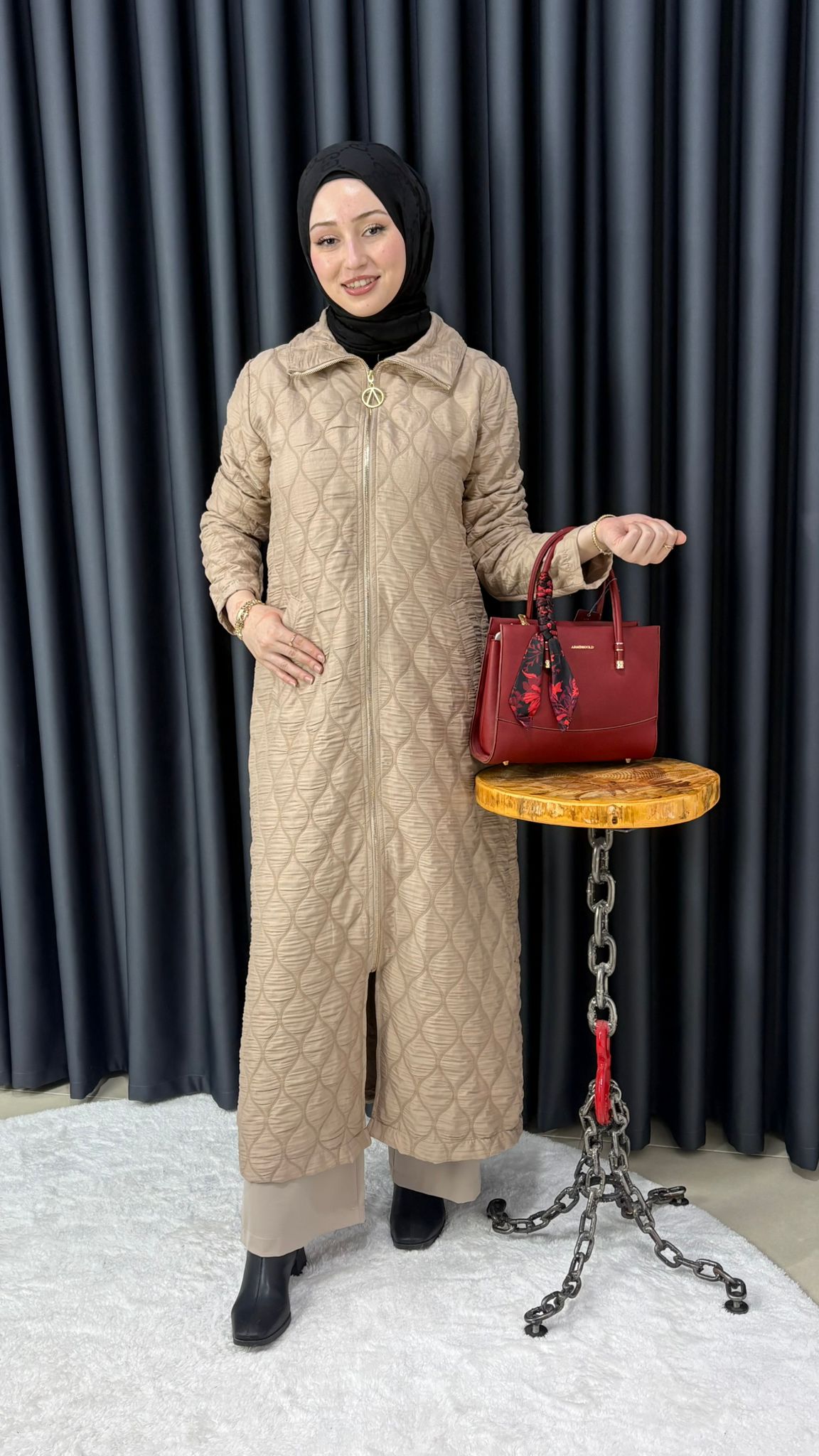 Uzun Fermuarlı Kapitone Kap