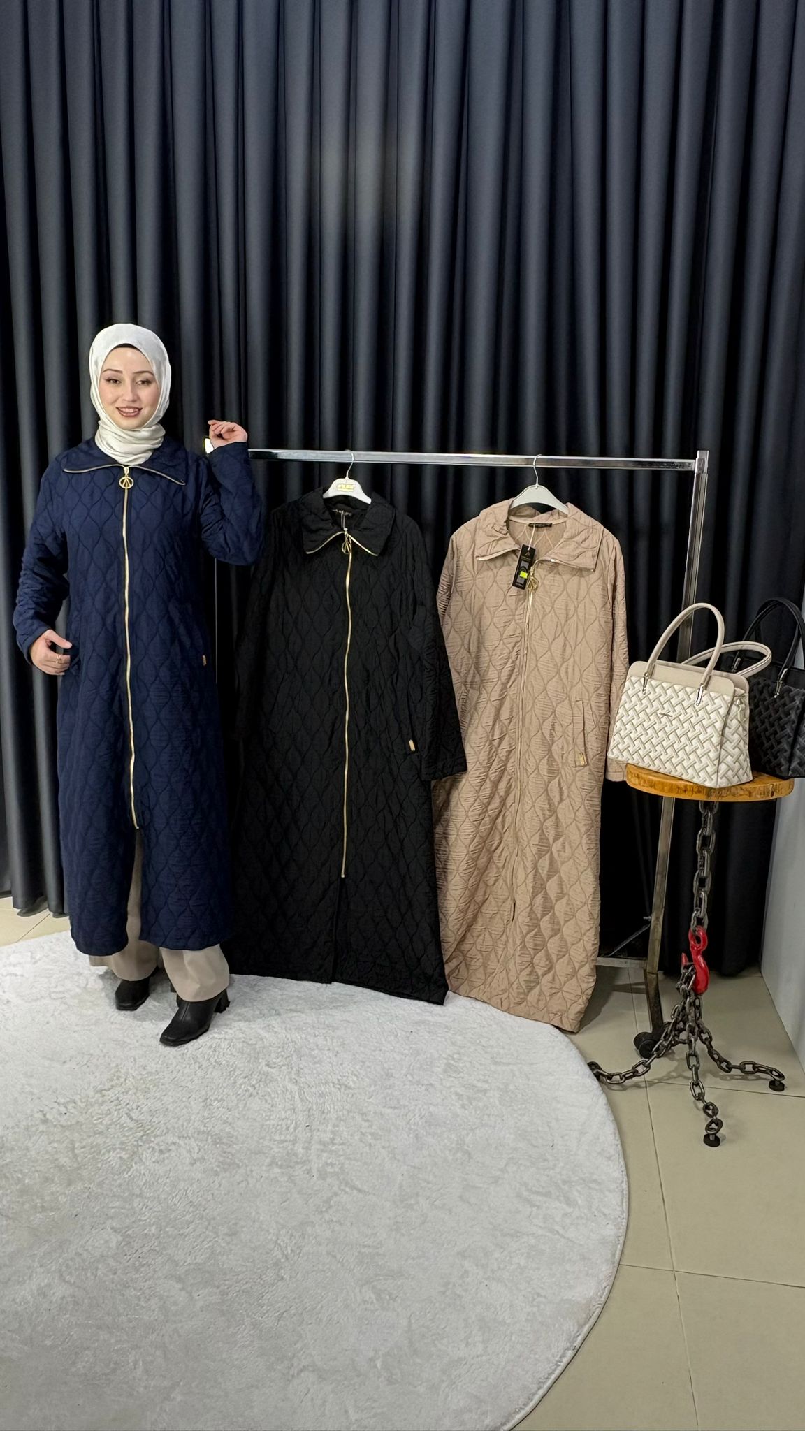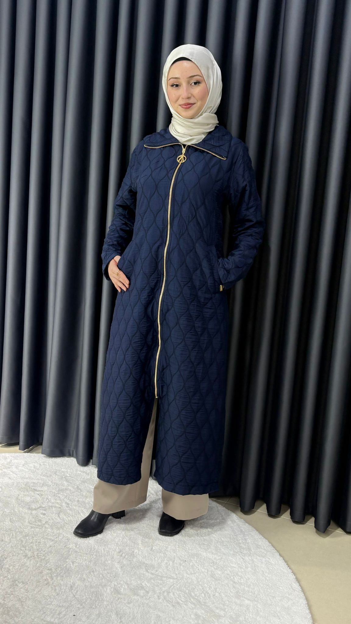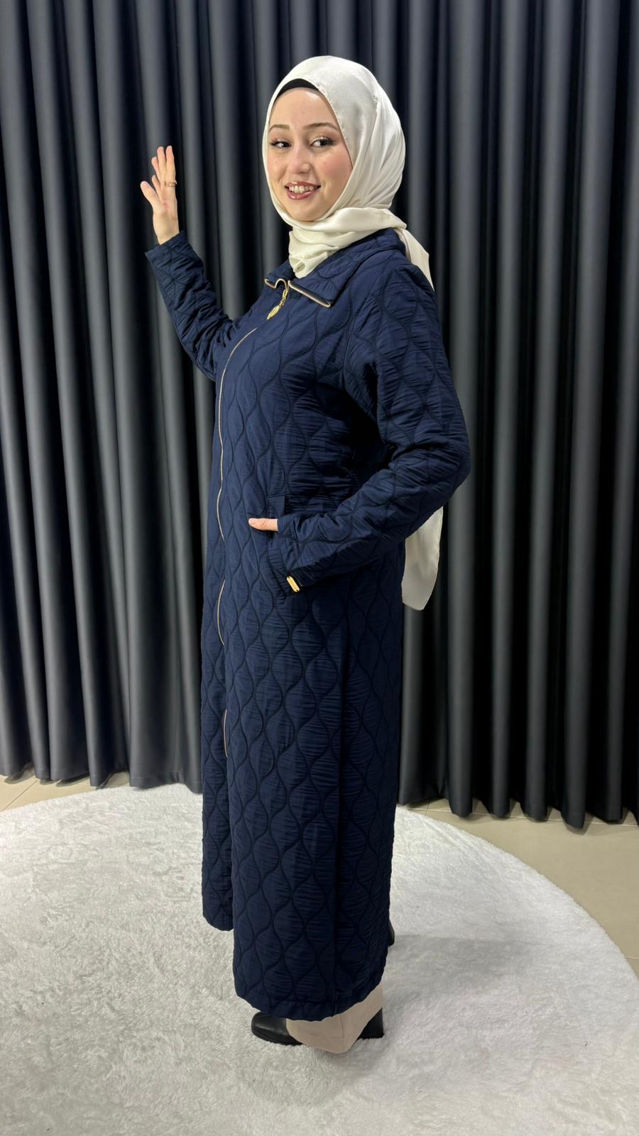 Mevsimlik önü fermuarlı uzun kapitone kap 140CM