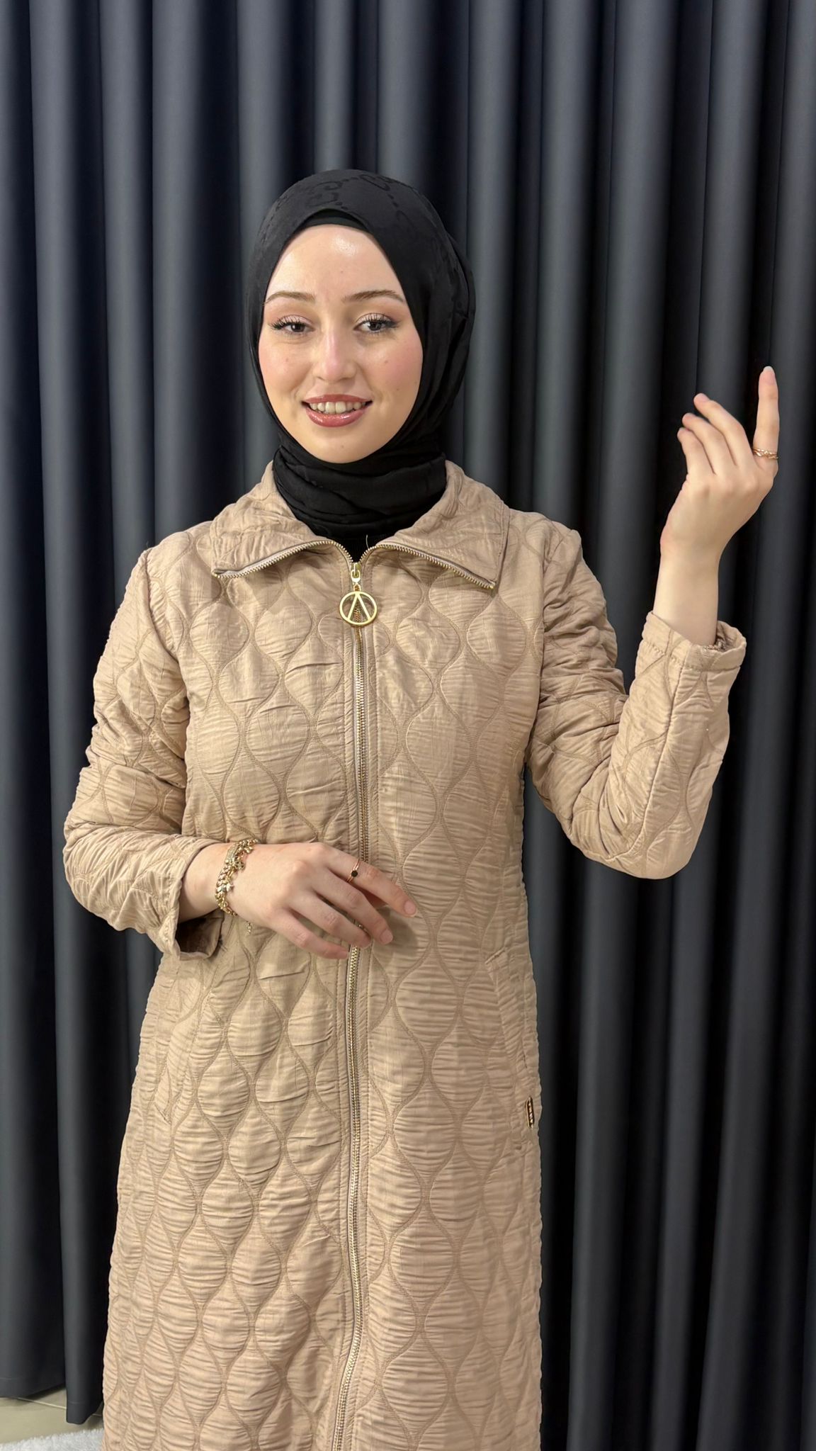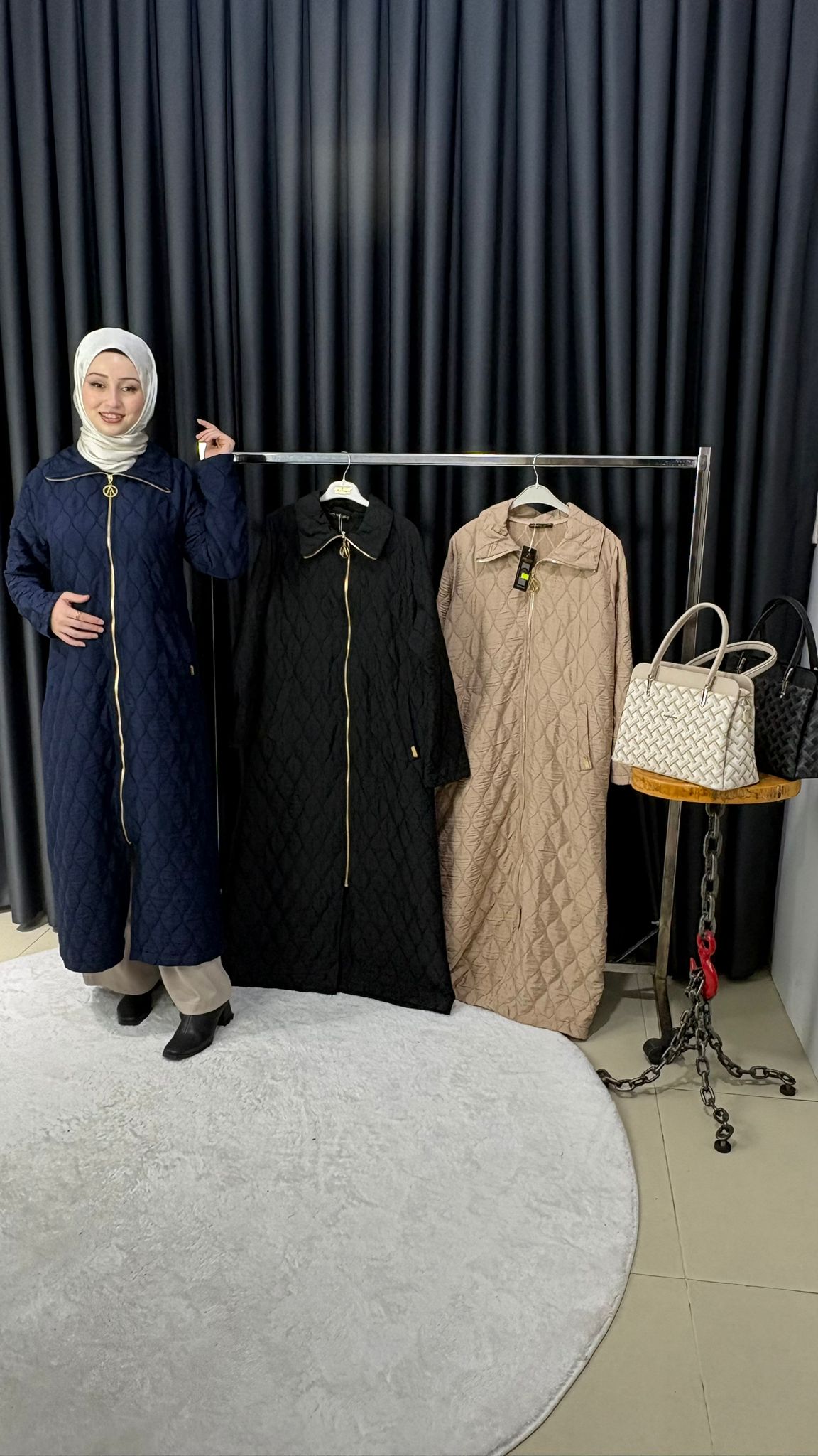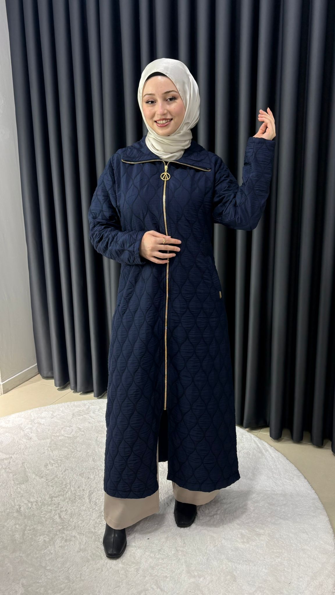 Mevsimlik önü fermuarlı uzun kapitone kap 140CM